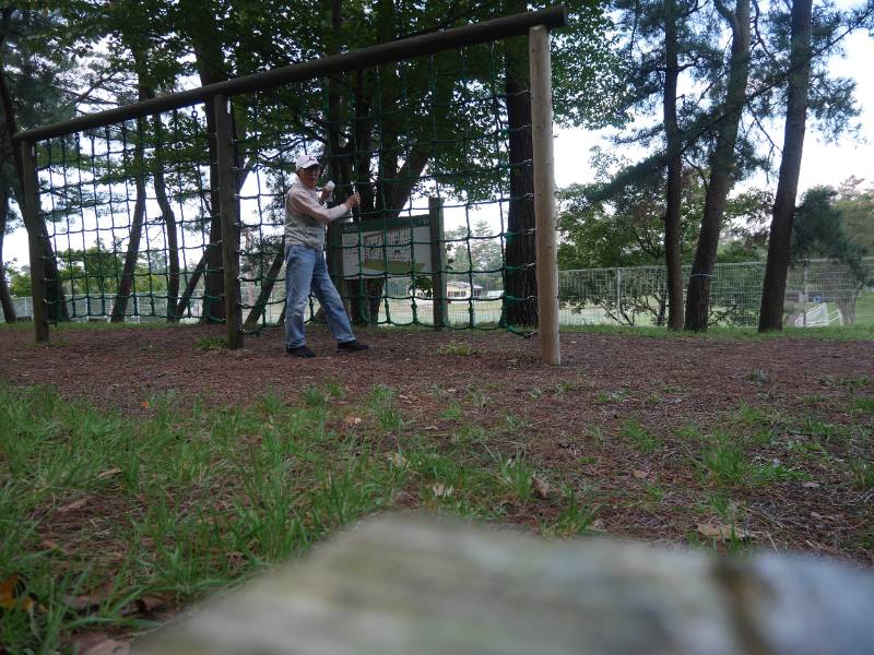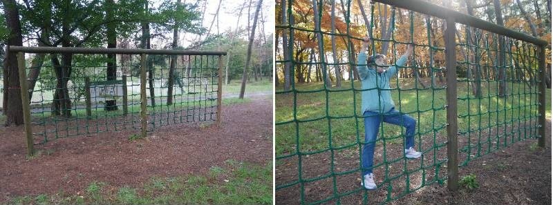 「アスレチックネット渡り」とは、ネットの張られたコースを渡るアスレチック遊具の一種で、公園やテーマパークなどで多く見られます。バランス感覚や全身の筋肉を使いながら、次のポイントへ移動するアトラクションです。ネットに手や足をかけたり、ぶら下がったりしながら進みます。全身運動になり、バランス感覚や体幹を鍛えることができます。素材は木製のものが多いです。フィールドアスレチック施設に設置されていることが多いです。