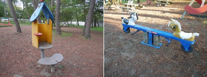 「よちよち砦」という小さなお子様向けの遊具や「ちびっこ広場」もある為、まだ小さなお子様のいるご家庭でも楽しんでいただけます。 また、園内には約2,200mのクロスカントリーコースも設定されており、コースの一部には走りやすいように足腰に負担少ないマットが敷かれている為、ウォーキング、ジョギングに最適です。
