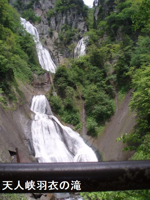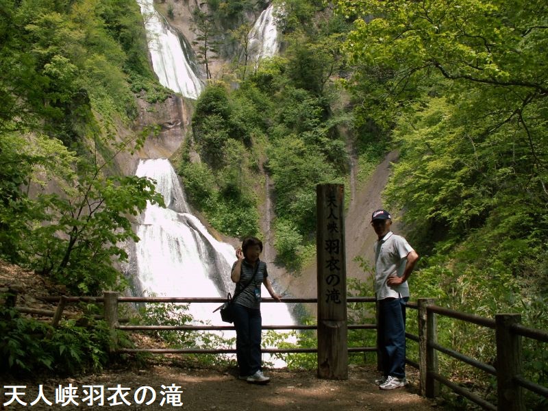 大正7年に文人である大町桂月氏により、景観の素晴らしさと水の流れが天女の羽衣を思わせることから、羽衣の滝と命名されたと言われています。紅葉の時期になると周囲が赤や黄に色づき、滝と紅葉が一度に楽しめることから、多くの観光客でにぎわいます。2013年に発生したがけ崩れの影響で、滝を正面に見ることができる見晴台が全壊、また羽衣の滝に向かう遊歩道が崩落し通行止めになっていました。その後2018年6月中旬に新しい遊歩道にて再開され、7段の岩を伝って流れ落ちる様子が再度ご覧いただけるようになりました。