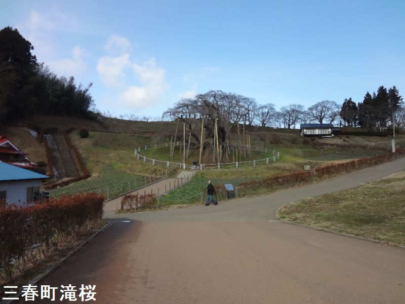 滝桜がその時々の三春藩主や領民にどれだけ愛され、特別視されていたかが想像できて興味深いです。現在では行方の分からなくなってしまった史料に「滝佐久良の記」(天保7年撰、筆者不明)がありますが、そこには江戸時代、三春藩主が殊に滝桜を愛し、毎年花の時期になると、庄屋から「いま何分咲き」と報告を受け、満開の時期になると藩主自らが花見に出かけていた、と記されていました。いまも「藩主花見の地」と伝えられる場所は滝桜を見る絶好の場所です。藩主はこの桜を御用木とし、その枝回りの地租を無税として、桜の保護に努めさせていたそうです。