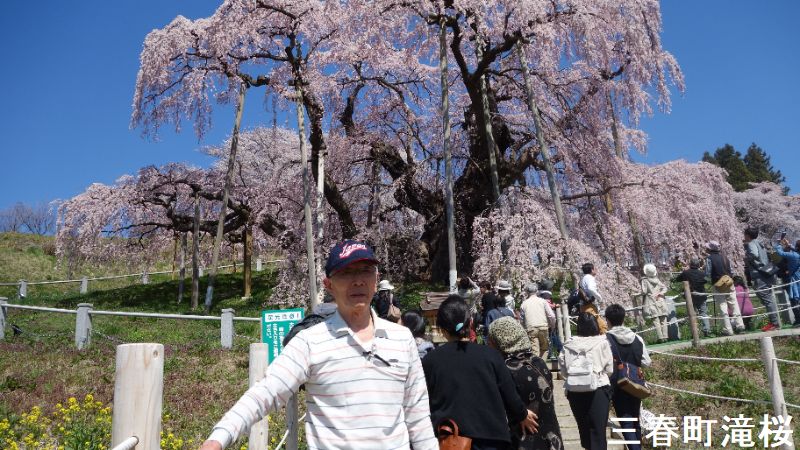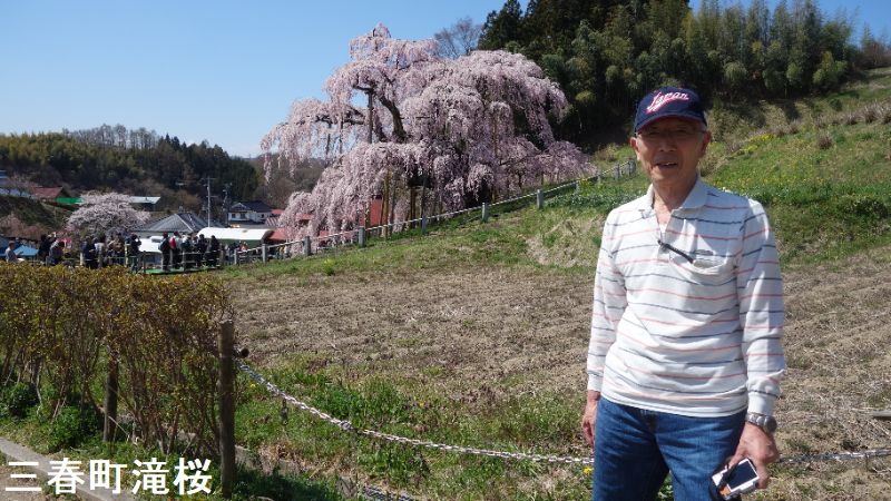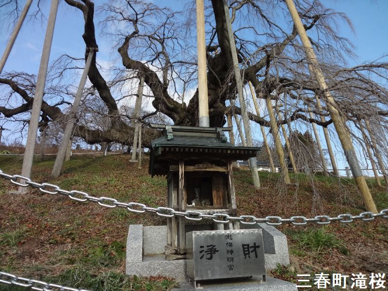 近年有名になった滝桜ですが、その開花時期は4月下旬と遅く、東京では桜の季節が終わろうとする頃です。花びらの大きな傘の下に立って見上げたときの何万という花びらの美しさ。花が風に舞う姿には、この世のものとも思えぬ美しさがあり、どこか祈りの世界に通じるものを感じさせます。滝桜には根元に祠がありますが、その土地の主として祀られてきたのかもしれません。実は、現在に伝わる三春盆唄にも、この滝桜は唄い込まれています。