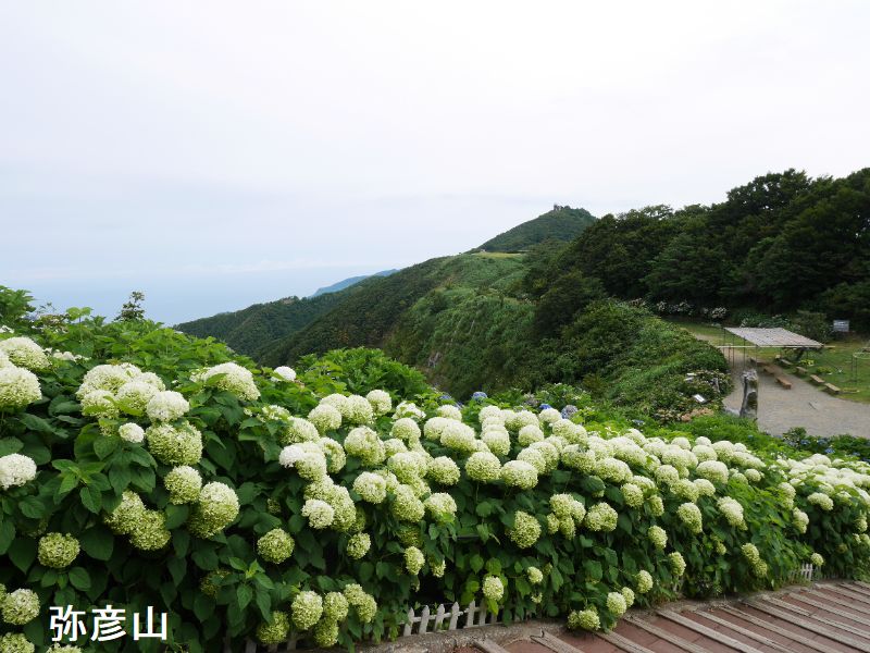 新潟平野のほぼ中央部の日本海に面した弥彦山塊の主峰。北隣に続く多宝山と双耳峰の姿をしています。佐渡弥彦米山国定公園の一部で、山頂には彌彦神社の祭神(天香山命)と妃神(熟穂屋姫命)の御神廟があり、弥彦神山として新潟県人の「心のふる里」と仰がれています。弥彦山九合目にある弥彦山頂公園には、展望レストランや高さ100mの回転昇降展望塔「パノラマタワー」があり、越後平野、日本海や佐渡を一望できます。また、山頂には彌彦神社の奥宮、御神廟があります。古くから霊山として崇められてきた弥彦山の自然のパワー、神聖な空気を感じることもできます。