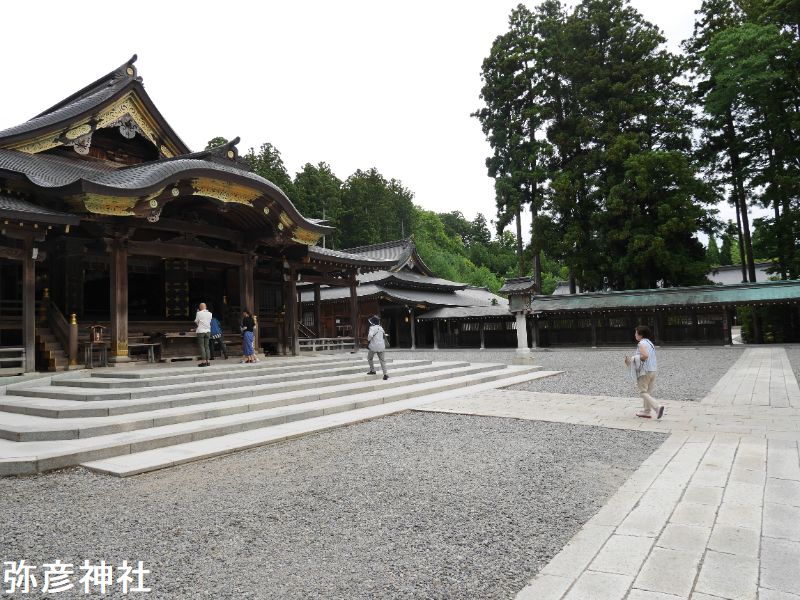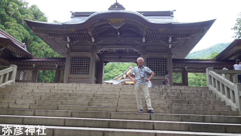 「伊夜比古おのれ神さび 青雲のたなびく日すら 小雨そぼ降る」「伊夜比古 神の麓に今日らもか 鹿の伏すらむ皮衣きて 角つきながら」 御祭神は天香山命「アメノカゴヤマノミコト」で神武天皇の命を受け、住民に海水から塩をつくる技術、漁、稲作など農耕術などの基礎を教えられたとのこと。 神社の社殿は、明治の大火に炎上し、大正5年に再築されました。平成13年に平成大修営事業として、本殿の御屋根葺替え等85年ぶりの改築工事を行いました。