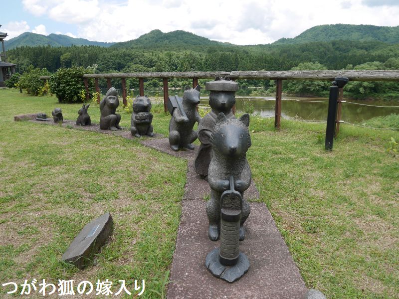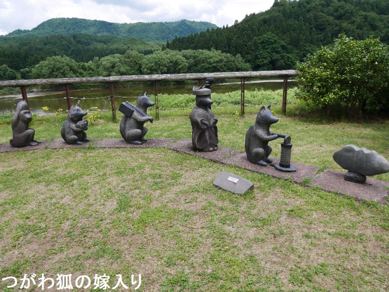 昔の嫁入りは夕方から夜にかけて行われ、あたりは暗く、提灯を提げて行列していました。狐火もこの提灯の明かりのように見えることから「狐の嫁入り」と呼ばれたと考えられています。(阿賀町ものしりガイドブックより引用)