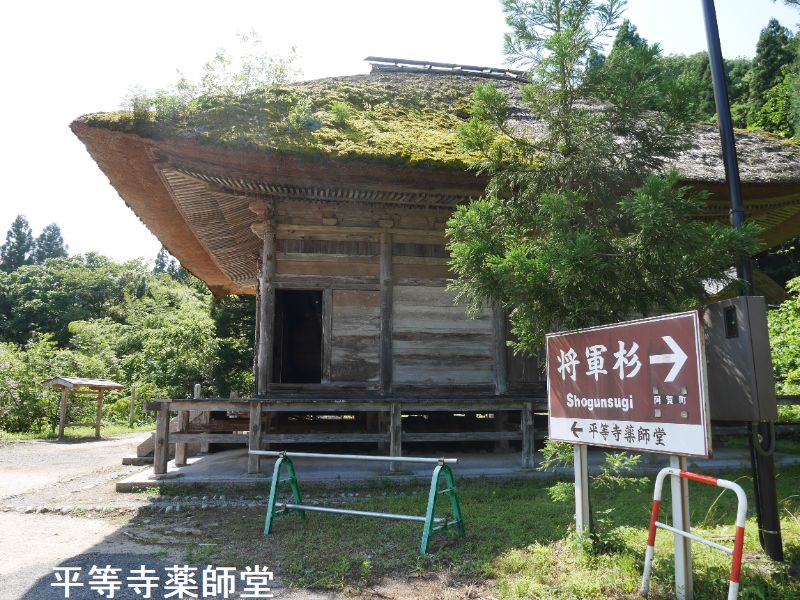 平等寺の隣地には維茂を埋葬後に目印として植えられたと伝えられる将軍杉や維茂の夫人が住んでいた御前ヶ遊窟、身を投げた御前ヶ鼻があります(維茂の墓は長野県上田市別所温泉にある将軍塚とも云われています)。平等寺はその後荒廃しますが永世年間(1504~1521年)に住職だった永源が復興に尽力し永正14年(1517)に現在の薬師堂を建立するなど再興します。平等寺は江戸時代に入ると会津藩から庇護され寛文8年(1668)には会津藩初代藩主保科正之(3代将軍徳川家光の異母兄弟)が将軍杉に維茂の墓碑を建立、万治3年(1670)には骨岩道徹和尚が改宗開山し天台宗から曹洞宗の寺院に再興されています。