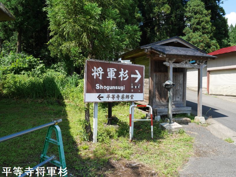 将軍杉は新潟県東蒲原郡阿賀町岩谷に位置しています。将軍杉将軍杉は平等寺境内に立つ巨木で、伝説によると余五将軍平維茂(養父である平貞盛は数多くの有能の人材を養子に迎え、維茂は15番目の養子だった事から余五将軍と呼ばれた。)が亡くなり遺骸を葬った後目印として植えたと伝えられています(維茂は猛将として知られ、信濃守の際には戸隠山に巣くう鬼女紅葉を征伐し、その傷が原因となり死去しました。遺骸は維茂と縁のある北向観音(長野県上田市別所温泉)近くの将軍塚に葬られたと伝えられています。