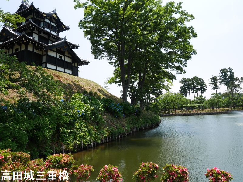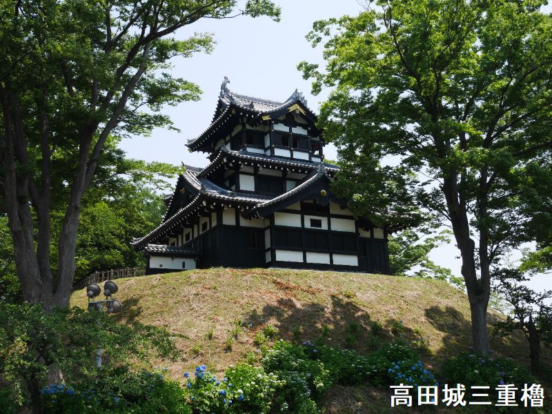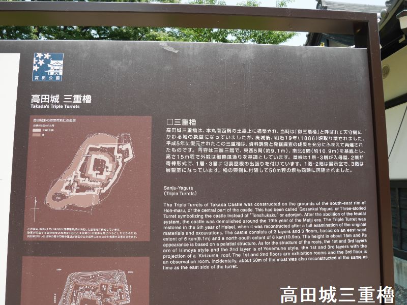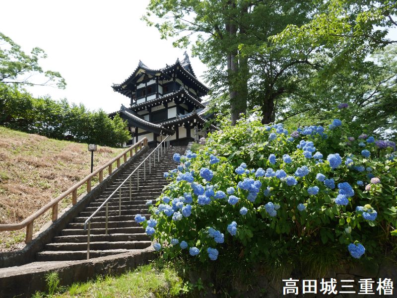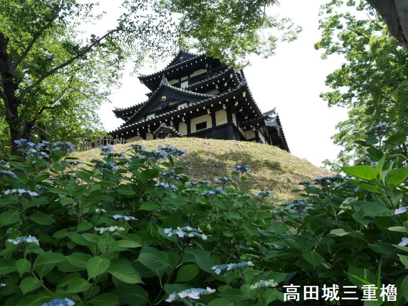 貞享二年(1685)、稲葉正住が十万三千石で入城して再び高田藩を立藩しました。元禄十四年(1701)、戸田忠真が六万七千石で封じられました。宝永七年(1710)、久松松平定重が十一万三千石で新たな藩主として封じられて五代続きました。寛保元年(1741)には榊原政永が十五万石で高田藩主となり、六代続いて明治に至りました。明治三年(1870)に焼失しました三重櫓は平成五年(1993)に鉄骨ではあるが木材を使用した木質構造という形で再建されました。