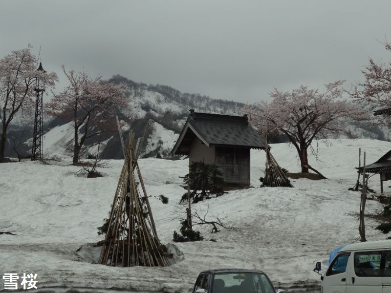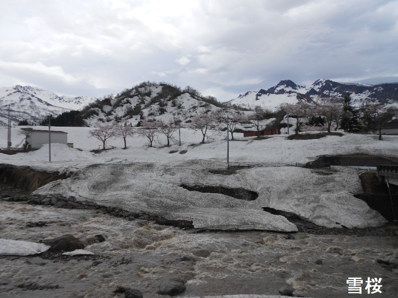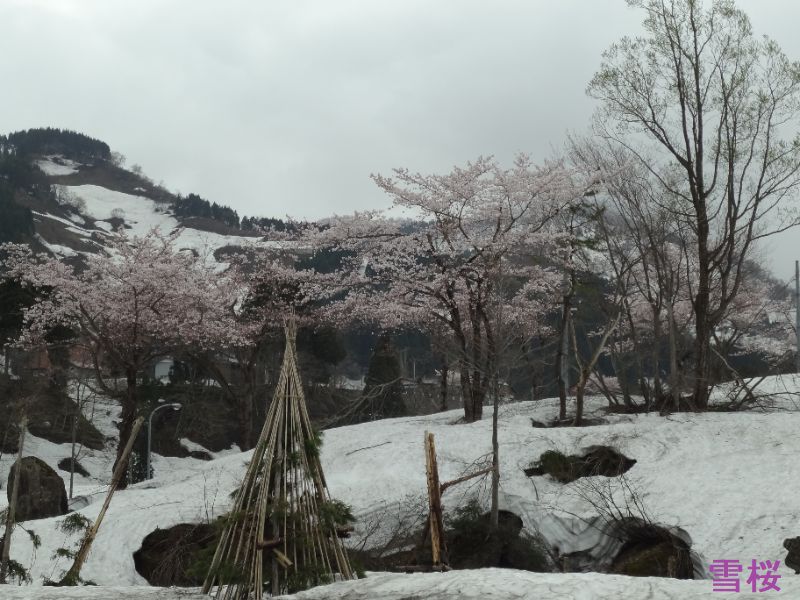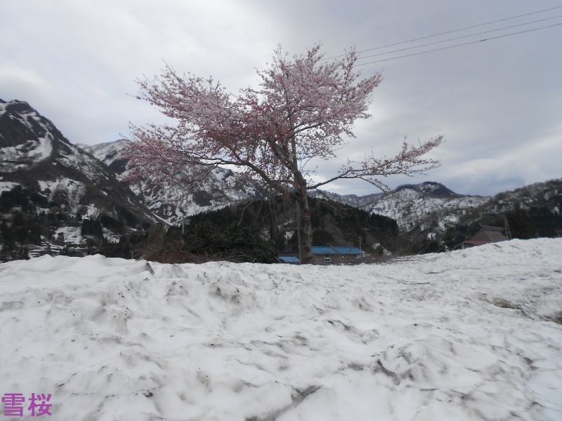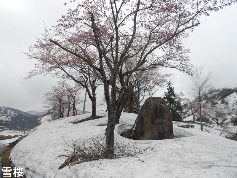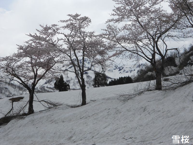 山中にはまだたくさんの雪が残っていて、「雪桜」を見つけました。もう桜の花はないだろうと思って来たのでラッキーでした。雪の冷たさが、桜の開花を遅らせているということなのでしょうか。それにしても、この「雪桜」は、ちょっとびっくりです。桜というのは、こんなにもいろんな環境で生きていけるものなのですね。やっぱり強いです、桜は。ますます桜に興味が出てきました。