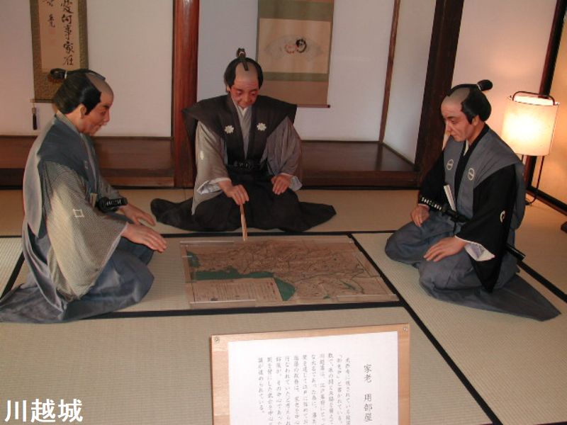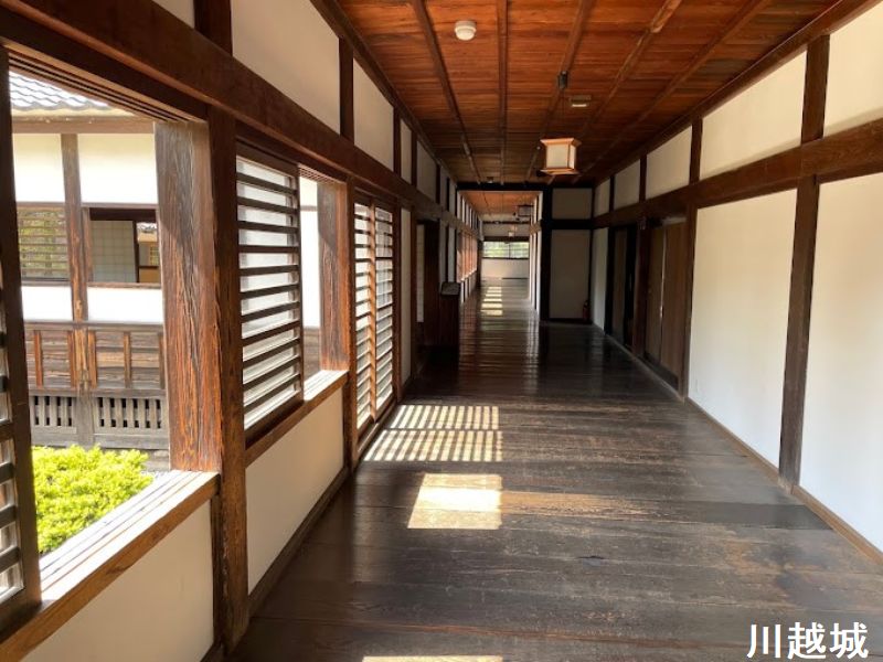 川越城は太田道真、太田道灌父子によって築かれた城で、関東七名城のひとつです。日本三大夜戦のひとつ「河越夜戦」の舞台となった城でもあります。江戸時代には川越藩の藩庁が置かれ、江戸の北側の防衛線として重要視されました。松平信綱(知恵伊豆)や柳沢吉保など幕府の要職についた歴代藩主が多く、特に江戸時代中期までは「老中の居城」でした(老中数7名は全国でも最多の藩のひとつ)。1848年(嘉永元年)に建られた本丸御殿の一部が現存しています。本丸御殿大広間が現存しているのは、日本では川越城の他には高知城のみで、大変貴重な遺構です。