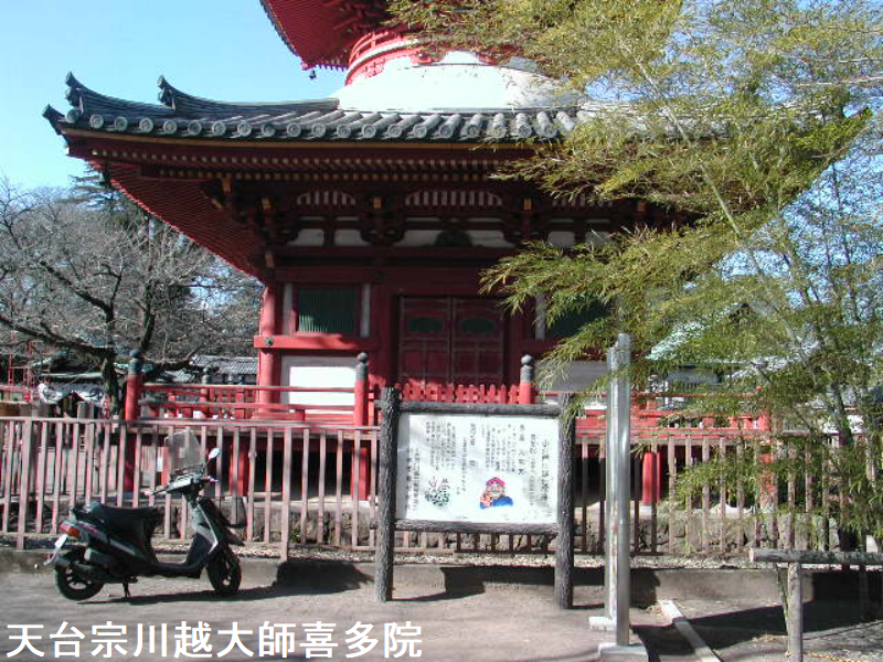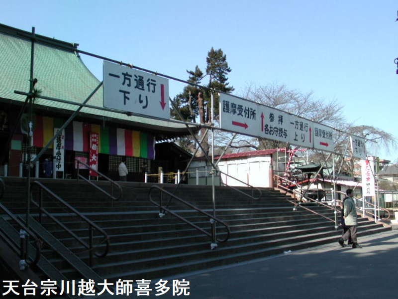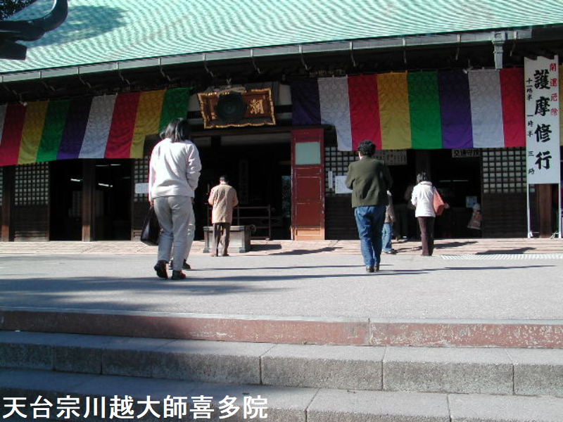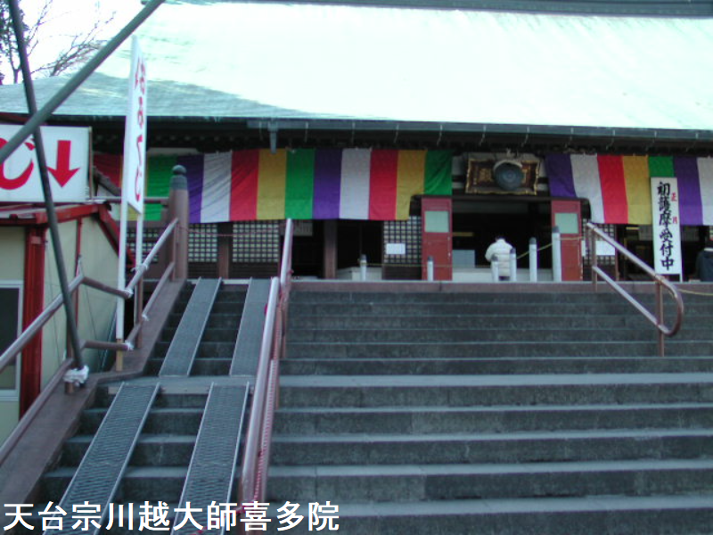 喜多院は、埼玉県川越市にある天台宗の寺院です。山号は星野山です。良源を祀り川越大師の別名で知られています。建物の多くが重要文化財に指定され、寺宝にも貴重な美術工芸品を多く有しています。広大な境内は池や掘を廻らせた景勝地となっています。1月3日の初大師、節分、長月護摩講塔、七五三、菊祭りなど諸行事はむろん、四季折々の行楽客で賑わっています。