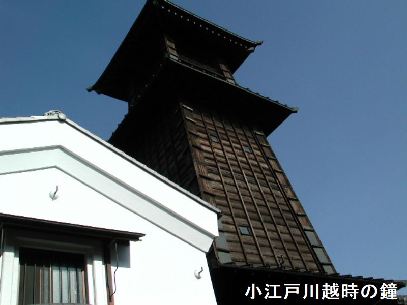 その当時、江戸ではすでに時の鐘が鳴らされていたようで、日本橋石町の時の鐘が最も古く、江戸城内での武士たちの規則正しい生活のために役立てられていたようです。また時の鐘は、時を知らせるだけではなく、火の見やぐらとしての役割も担っていました。人々の安全を静かに見守る時の鐘は、日常生活と密接に結びつき、親しまれてきました。やがて桶大工の職人が多く住んでいた川越にも、半刻(1時間)ごとに鐘の音が鳴り響くようになりました。現在の「時の鐘」は4代目で、明治26年(1893年)の大火のあとに再建されたものです。木造のやぐら造りは3階建てで高さが約16メートル、鐘は電動式となりましたが、午前6時、正午、午後3時、午後6時、いまなお行く人に時を知らせてくれます。