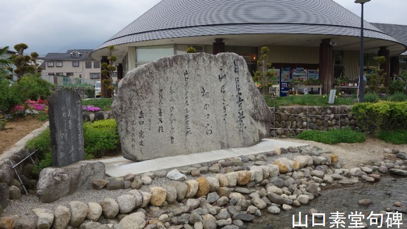 展望広場にも七体のタヌキとウサギが置かれています。「カチカチ山」のあらすじなどを紹介するパネルもあり、訪れた人の興味を引きます。また、同山の中腹では小説の一節「惚れたが悪いか」と刻まれた文学碑も見ることができます。2006年には、展望広場に幸せを願うハート型の「カチカチ山・天上の鐘」がお目見しました。