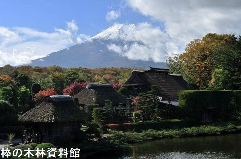 榛の木林資料館は 18世紀後半に建てられた現存する忍野村最古の茅葺き民家渡邉家を開放した資料館です。館内には、当時そのままの家具や家財道具、蚕の養殖場、徳川時代の 武具、重要書類などが展示されています。また、敷地内には、忍野八海の1つ、【底抜池】や、鯉の池、ニジマスの触れる池などが存在します。天気の良い日、紅葉の季節、雪景色なども絶景です。玄関を入ると、 弓型の梁の露出した高い天井と太い大黒柱が目にきます。 それぞれ12畳半の一の座敷、 二の座敷、 10畳間の三の座敷があり、 渡辺家で代々使われてきた長持、 タンスや生活用具、 古文書類、 「関の兼光」 などの刀剣類、 鎧、 兜などが展示してあります。