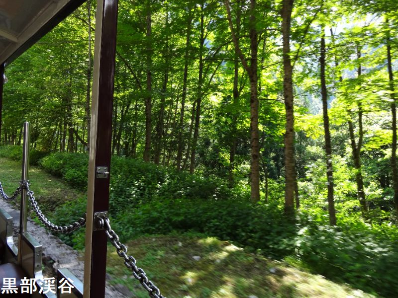 黒部峡谷は、中部山岳国立公園の中にあり、北アルプスの隆起とともに、黒部川が長い時間をかけて浸食・形成した、日本でも有数のV字状の大峡谷です。断崖絶壁の谷底を青い水が駆け下り、両岸の緑や紅葉を映すさまは、世界に誇る雄大な景観です。峡谷両岸の原生林は、初夏には新緑、夏には深緑、秋には紅葉と変化し、眼下の清流と相まって、その美しさは言葉では言い表せません。この峡谷は、昭和39年に国の特別名勝、特別天然記念物に指定されました。