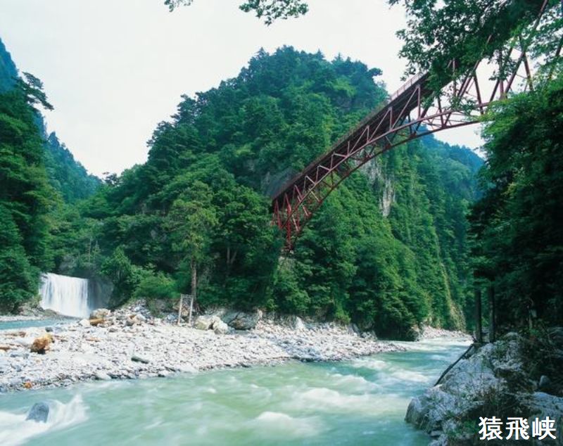 名作映画「黒部の太陽」の舞台になったダム開発の資材運搬用だったトロッコ列車はかつて、生命の保証はしないとの条件付きで登山客などに便乗を認めていましたが、1970年代から黒部渓谷鉄道として正式営業を開始しました。延長約20kmの区間には計21の鉄橋があり、渓流からの高さが60mの「後曳橋」や、ダムによる野生サルの移動が妨げられないように設けられたという「猿専用吊橋」もあります。「新山彦橋」下流には、ルート変更で廃止になった旧「山彦橋」もあり、現在は遊歩道になっています。