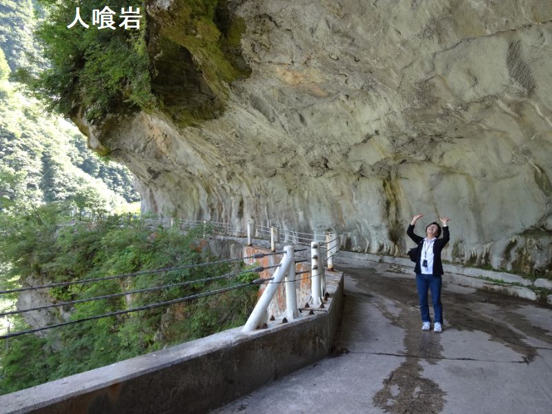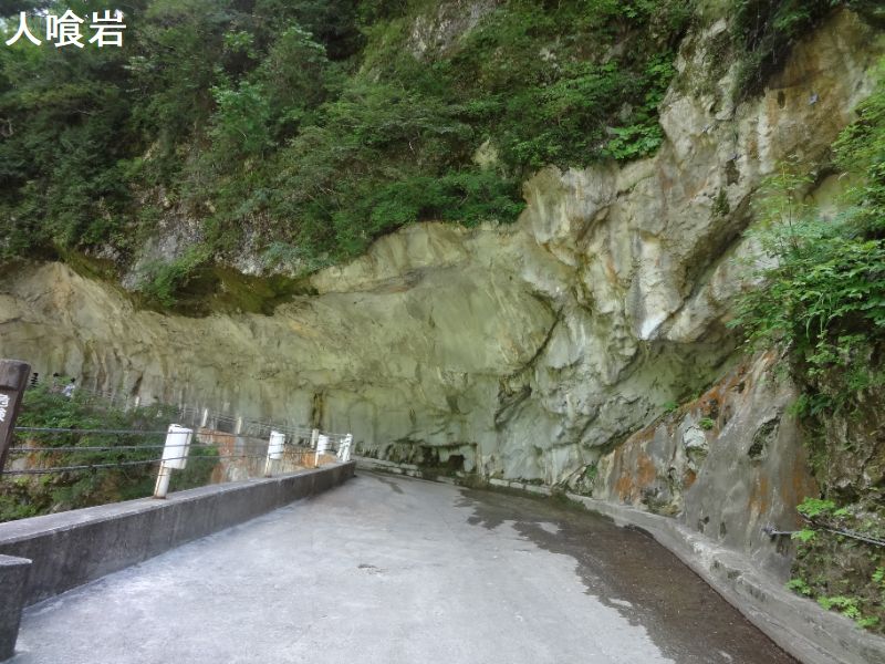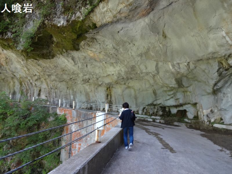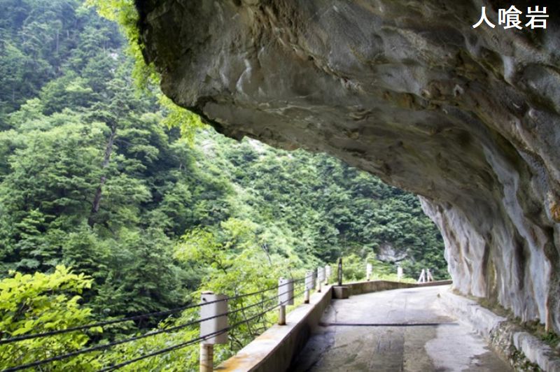 黒部峡谷トロッコ電車の終点「欅平駅」から徒歩5分程の場所にある、奥鐘山の岩壁を削って作られた歩道に、頭上を覆う岩壁がまるで人を飲み込むように見えることから、「人喰岩」と呼ばれるようになりました。その迫力ある景観からフォトスポットとしても人気を集めています。欅平駅から奥鐘橋を渡ると見えてきます。岩壁をえぐり取って造られた歩道は、頭上に迫る岩肌は歩く人を飲み込むようかのに見えて迫力満点です。