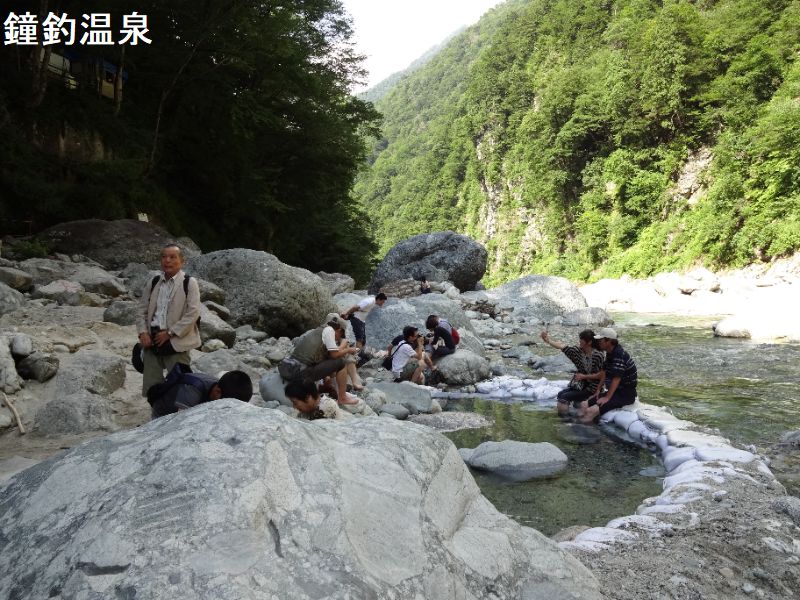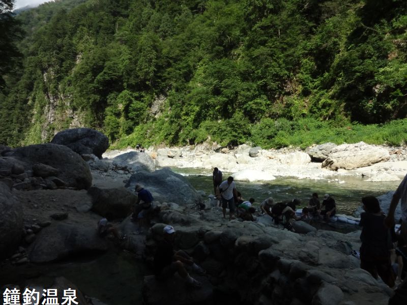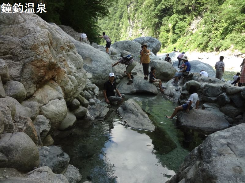 黒部峡谷鉄道鐘釣駅には鐘釣温泉旅館があり、河原の露天風呂が無料で開放されています。ワイルドな風情も最高で、お湯も良いので、温泉好きにお勧めです。ただし、観光シーズンには観光客に取り囲まれてしまうので、観光客が少ない時間帯を考えて行くのがお勧め。昔は観光客は見るだけで帰って行ったので、気にしなければ問題なく入浴出来ていましたが、今どきの観光客はせめて足湯で堪能しようとするので、裸で入っていると見られてしまいます。最初から水着を着用しておいた方が無難かもしれません。