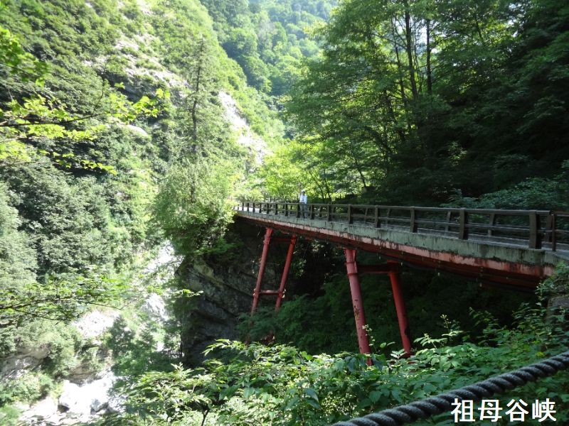 黒部川の本流に架かる朱塗りの橋は、奥鐘山や名剣山などを見渡せる絶景ポイントです。高さ34mからの迫力ある景色に吸い込まれそうです。欅平駅屋上展望台から見る橋の朱色と山々のコントラストも必見です。黒部峡谷トロッコ電車の終点「欅平駅」駅から祖母谷へ向かう途中に架かる高さ34mの橋。しっかりした造りの朱塗りの橋で、峡谷の緑に橋の朱がマッチします。紅葉時期の美しさも格別で多くの観光客が訪れます。紅葉の見頃は10月下旬-11中旬頃です。