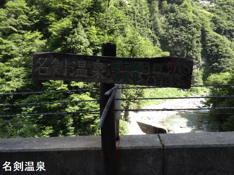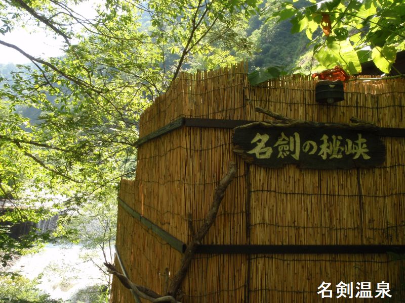 母谷川渓谷沿いの秘湯名剣温泉。黒部峡谷鉄道の終点欅平駅から15分ほど歩いたところで、湯は祖母谷温泉からの引湯しています。渓谷美にあふれ、絶壁の上に男女別の露天風呂がある。阿曽原、黒薙、鐘釣、欅平、名剣、祖母谷の6か所を総称し、黒部峡谷温泉郷と呼ばれています。元々は谷底にあった源泉近くに1957年に宿を建設し創業しました。その後1969年の水害で全施設が流出し、1970年に宿と内湯は高台の道路脇の現在地に移転しました。それが現在の旅館の建物です。その後1995年には7.11水害により露天風呂が流失し、源泉が埋没しました。その後1996年8月1日に宿の営業を再開し、露天風呂は宿に近い現在地で再建しましたが。源泉は1974年以降、上流の祖母谷温泉から引湯しています。
