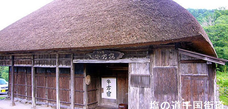 千国越えコースにある「牛方宿」は小谷村の有形文化財にもなっており、千国街道でも唯一現存するという大変貴重なものです。当時は牛は土間、牛方は牛の姿が見える2階にと一つ屋根の下で寝泊まりして旅の疲れを癒しました。国道沿いに建つ