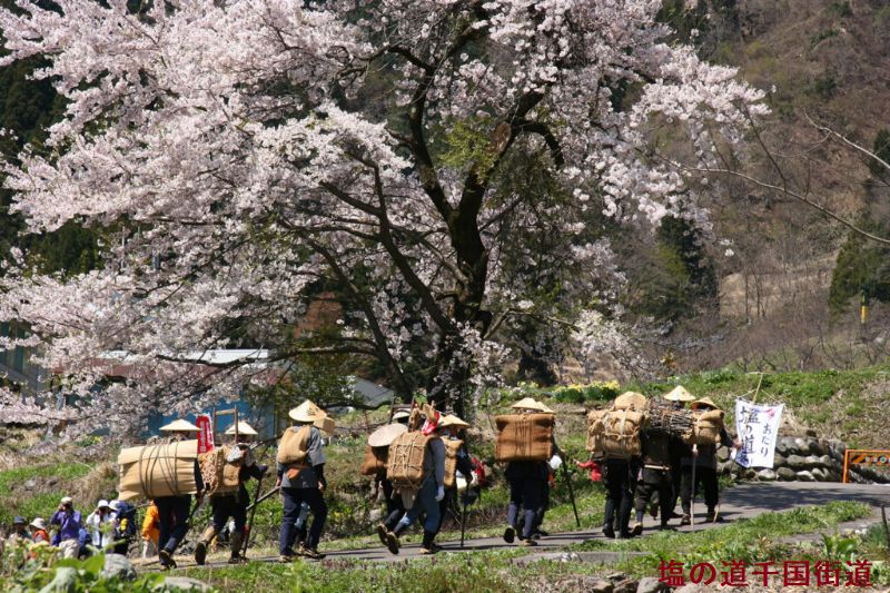 千国街道は、長野県松本市から新潟県糸魚川市に至る日本の街道です。街道名は宿場町の一つである千国宿から採られました。街道沿いの地名を冠した糸魚川街道、安曇野街道、松本街道等の別名を持っています。塩や海産物を内陸に運ぶのに使われた道のことを云います。また反対に内陸からは、山の幸(食料に限らず、木材や鉱物も含む)が運ばれた道でもあります。製塩が化学製法に代わり、専売法に依る規制がかけられる以前は海辺の塩田に頼っていたことから、日本の各地で、海と山を結ぶかたちで数多くありました。日本各地で盛んだった塩の道での往来は、大糸線や飯田線といった鉄道建設に反映されたり、1960年代以降に道路が整備されて、現在も物流の主要なルートとして残っています。また海外においても、ネパール西北部のカリガンダキ渓谷地域やマレーシアのクロッカー山脈公園を横切る塩の道をはじめ、各地に塩の道が存在しています。