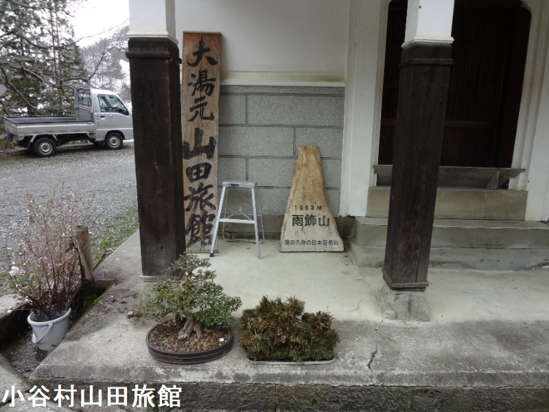 新潟県と長野県の県境、小谷から妙高にかけての県道をかなり上がった山腹に小谷温泉があります。山田旅館は江戸時代建築の本館を含む6棟が国の登録有形文化財に指定されています。とても宿の玄関とは思えないような土間と見事な太い欅の柱やはりに驚きます。昔の旧家そのままです。古い調度品のならぶ茶の間に大正生まれの大きな柱時計が時を刻んでいます。浴室をのぞくと、とうとうと音をたててラドンを含む重曹泉が滝になって流れ込んでいます。飲用は特に肝臓や糖尿病に効果があり、浴用は傷や火傷に効くほか、子宝の湯とも言われている良く効く温泉です。並んで立つ別館は平成の建築です。またその隣に景色が一望できる展望風呂と、檜の内湯がある外湯へとつながっています。小谷温泉資料館もあり、雨飾山麓の自然と源泉や歴史を大事に守っています。