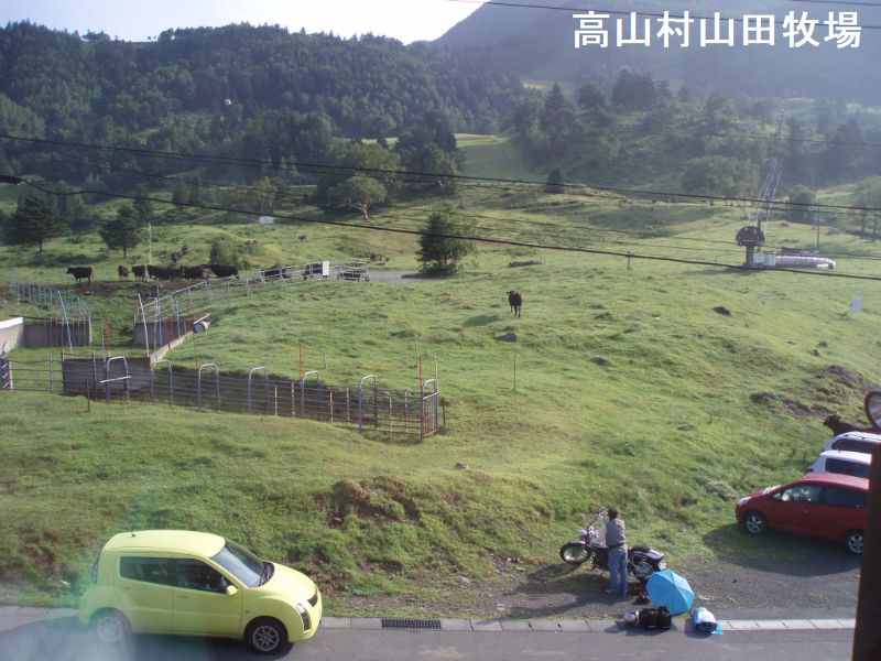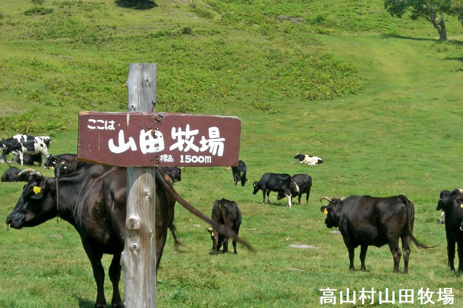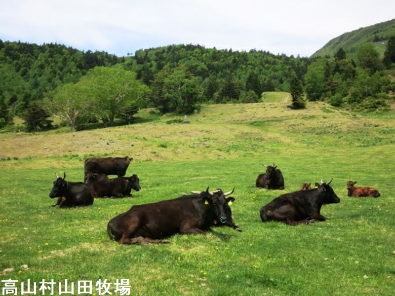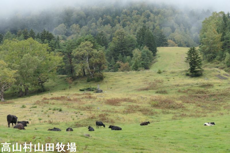長野県上高井郡高山村、志賀高原との間にそびえる笠ヶ岳(標高2075.9m)の南西斜面、標高1500m〜1700mに広がる公共育成牧場が山田牧場。159haという広大な牧場には、5月中旬~10月中旬にかけて、数十頭の牛の放牧が行なわれており、長野県道66号(豊野南志賀公園線)の両脇には、チロル的な景観が広がっています。