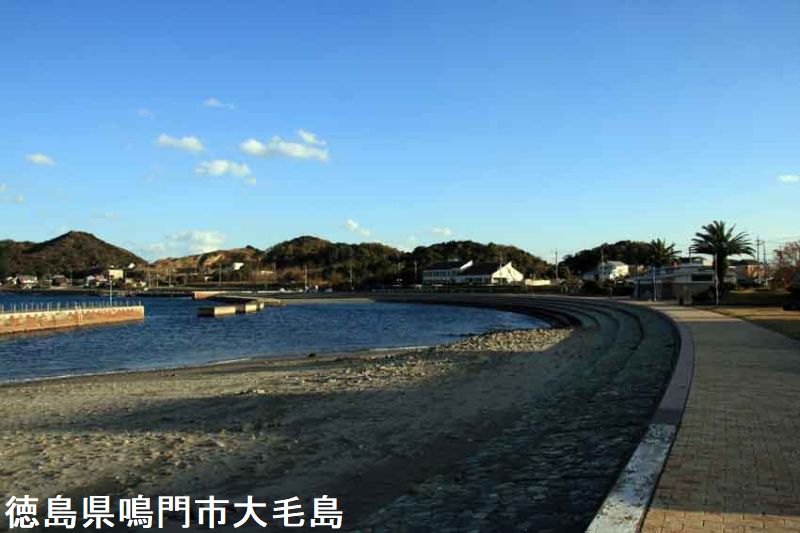 大毛島は、徳島県鳴門市 鳴門市の北東端に位置する島です。 北は播磨灘と鳴門海峡、東は紀伊水道、南は小鳴門海峡に臨み、 西は内湾のウチノ海に面し、高島・島田島と近接しています。南東端の土佐泊は古くから海道の要衝として知られ、「土佐日記」の作者・紀貫之にまつわる事跡、古墳群や中世の山城跡などの史跡も残されています。