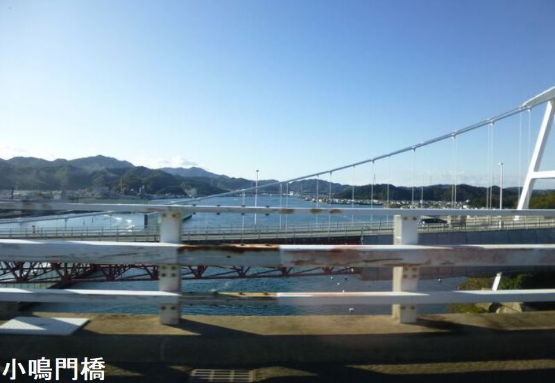 未だ本四架橋など夢物語の昭和50年代、徳島県が小鳴門海峡架橋の有用性に思いを馳せ、紆余曲折の末、1961年に竣工したことを知りました。この橋は徳島県が管理する有料道路で唯一の黒字道路で、通行料無料化は予定より早く完成から16年後の1977年に成ったとのことです。この由来を事前にウィキペディアで知り、是非この橋を間近で見たいと思い、鳴門観潮、大鳴門橋、渦の道など観光の帰途立ち寄りました。この橋が「小鳴門橋」と呼ばれるのは、「小鳴門海峡」に架かっているからで、後輩の「大鳴門橋」にくらべて小さいからではないことを橋標が示している通りです。