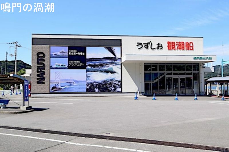 大阪湾側から進んだ潮波が鳴門海峡に達し満潮になったとき、鳴門海峡方面へ進んだ潮は満潮を過ぎ干潮になっています。この時の播磨灘側(満潮)と紀伊水道側(干潮)で海面の落差(段差)ができます。海面の高い播磨灘から海面の低い紀伊水道へ一気に海水が流れ込み、海底の地形などの条件が揃って「渦潮」が発生するのです。車で海沿いの道を走って亀浦観光港までは数分の道のり。「うずしお観潮船」と書かれた長方形の建物とバス停のある広い駐車場が目印です。基本的には一本道なので、迷ったりすることはないと思います。こちらの「うずしお観潮船」で乗船できるのは、大型の「わんだーなると」と小型の「アクアエディ」の2種類の観潮船です。