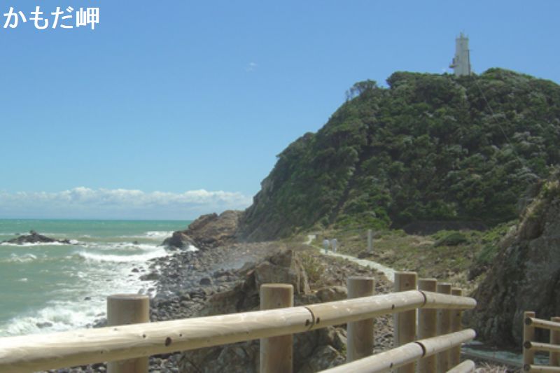 四国最東端の岬で灯台からの眺望は素晴らしく、沖合には伊島がたたずみ晴れた日には遠く大鳴門橋、淡路島、和歌山県まで望むことができます。室戸阿南海岸国立公園を代表する岬で、海岸ではゴロゴロとした大きな石が波に洗われ、北寄りの砂浜はアカウミガメの上陸産卵地でもあり、岬のつけ根にある大池周辺は珍しい亜熱帯植物群落として知られています。平成22年9月に岬の魅力を高めるため、波と風をモチーフにした石のモニュメント『波の詩(うた)』が設置されました。ハートをイメージした空洞からは伊島や水平線を望むことができ、訪れた人々がそれぞれの想いを感じることができ新たな『パワースポット』として今注目されています。蒲生田岬は、瀬戸内海紀伊水道に突き出た形の四国最東端の岬です。徳島県阿南市椿町に位置し、室戸阿南海岸国定公園に属しています。蒲生田岬灯台と和歌山県の紀伊日ノ御埼灯台を結んだラインは紀伊水道と太平洋を分かつ線で大阪湾および瀬戸内海の入り口をなしています。領海及び接続水域に関する法律等でもこのラインが瀬戸内海と定義されています。