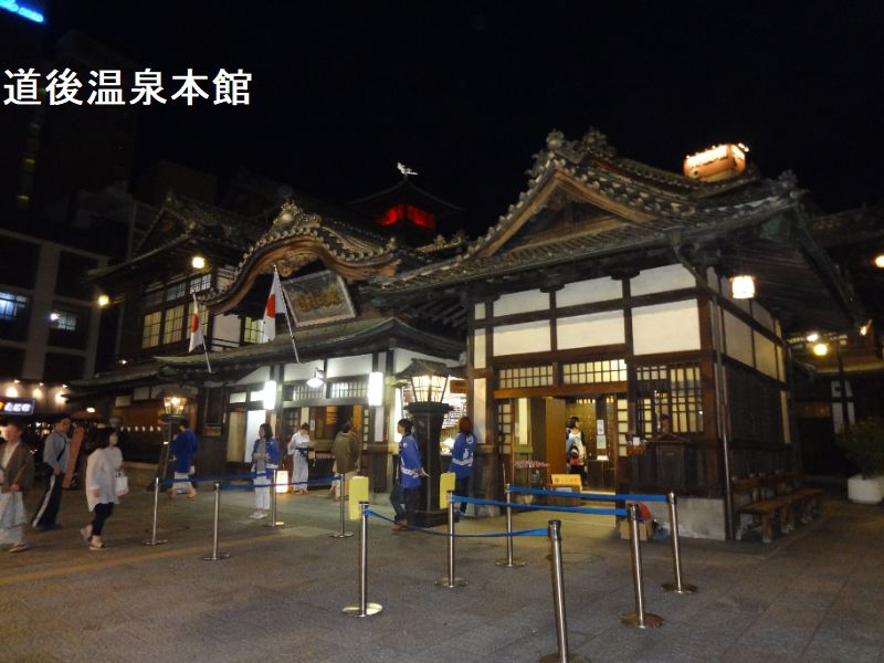道後温泉は、四国・愛媛県松山市に湧出する温泉です。日本三古湯の一つといわれています。その存在は古代から知られ、万葉集巻一にも見られます。なおかつてはこの周辺が温泉郡と呼ばれていましたが、これはこの温泉にちなむ地名です。夏目漱石の小説「坊つちやん」で有名になりました。