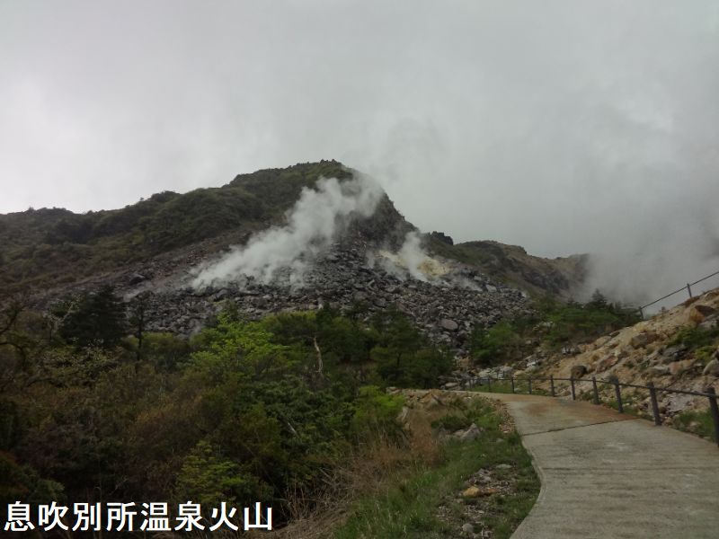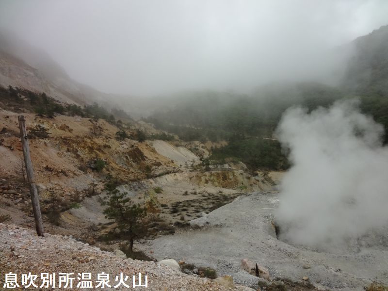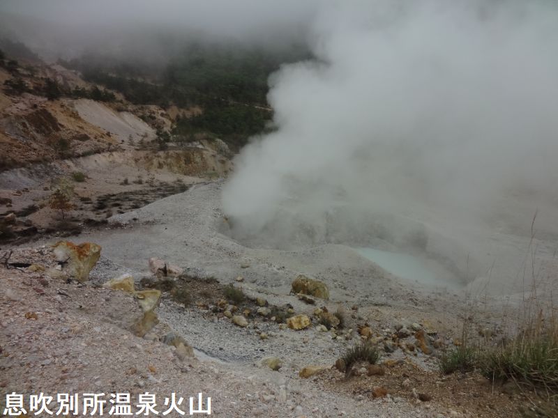 大分県別府市及び由布市にまたがる鶴見岳・伽藍岳は、南端の鶴見岳(標高1375m)から北端の伽藍岳(標高1045m)まで約5㎞にわたって溶岩ドームが連なる火山群です。有史以降では、伽藍岳が771年に水蒸気噴火を起こし泥流が発生、867年の水蒸気噴火では泥流、噴石、降灰などがあったとされています。その後、長い間噴火はありませんでしたが、1949年に鶴見岳の標高1100m付近で多数の噴気孔が出現し、高さ約10mの噴気を上げているのが発見された。1974年から翌年にかけては、同じ地点で高さ約100〜150mの噴気が上がり、周囲には小噴石が飛散しています。