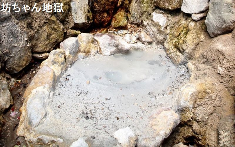 大分県別府で有名なのは温泉と地獄巡りです。メジャーな地獄ではなく、かなり小さくマイナーな地獄があります。それが坊ちゃん地獄です。別府の地獄めぐりは有名ですが、「坊ちゃん地獄」はそこには入っていない小さな地獄です。「明礬 湯の里」への階段を上がる手前くらいにひそかに存在しています。鉱泥の下からボコボコと湧き出していて、美容と健康に効能があるそうです。明礬温泉を凝縮した感じです。どろの中からボコッボコッと沸き出す温泉です。この泥は美容に良いそうです(活断層を傳って噴出する噴気で長い歳月で熟成された鉱泥は美容と健康に効能があります。)がこの地獄自体が熱湯なので触れません。