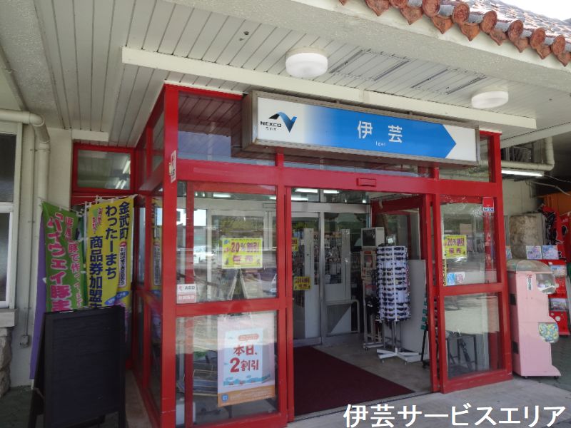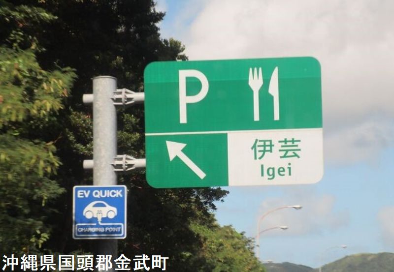 伊芸SAがあるのは、沖縄県国頭郡金武町でです。国頭郡の読み方は「くにがみぐん」で、金武町は「きんちょう」です。ちなみに国頭郡の人気観光スポット「美ら海水族館」から那覇方面へ走れば、約1時間で伊芸SAに到着するので、ちょうどいい休憩スポットとなっています。赤瓦とシーサーという沖縄感100%の屋根 & 爽やかな青空 & 小高い丘に位置しているため眼下に金武湾が一望できるという抜群のロケーションは見事です。沖縄本島を縦断している沖縄自動車道の起点・許田[きょだ]ICから、那覇方面に向かうと最初にあるサービスエリアです。冬でも暖かくエリア内には、色とりどりの花が咲き、眼下にはエメラルドグリーンの海が広がる南国情緒あふれています。