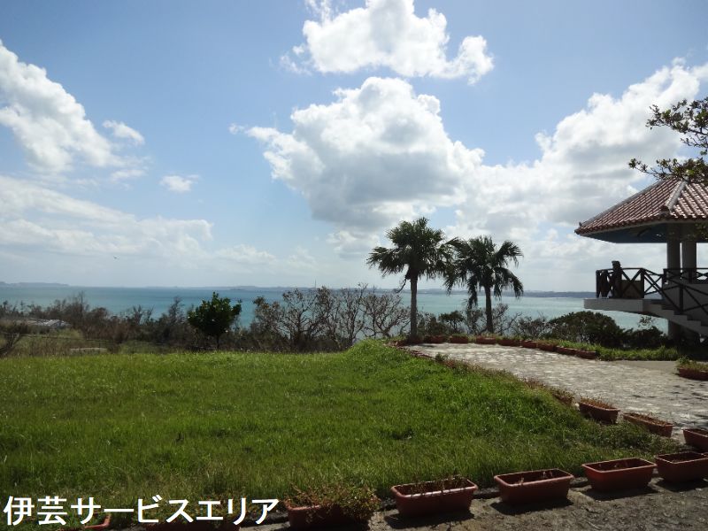 沖縄道を北部に向かって最後のサービスエリアがここ「伊芸サービスエリア」です。金武湾をはさんで海中道路の真っ赤な橋や平安座島、宮城島、 伊計島が一望できる展望台もあるので1つの観光名所になっています。車椅子の方や足が不自由な方が上がれるようにスロープも設置されています。伊芸サービスエリア(上り線)は日本最南端のSAです。小高い丘に位置しており眼下に金武湾が一望でき、天気のいい日は勝連半島と平安座島や伊計島をつなぐ海中道路も見ることができます。刻々と変化するエメラルドグリーンの、海の絶景のビューポイントとして、つかの間の休憩で心と体を癒してくれます。