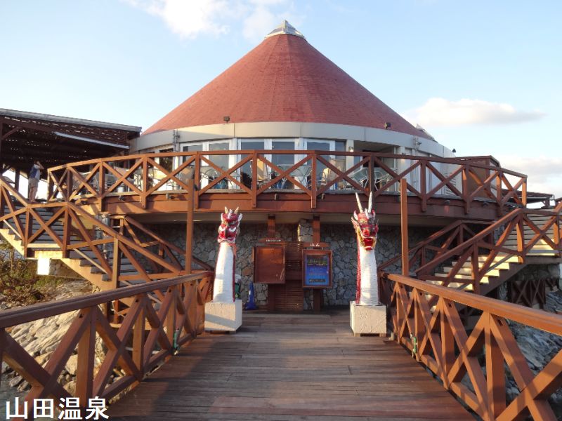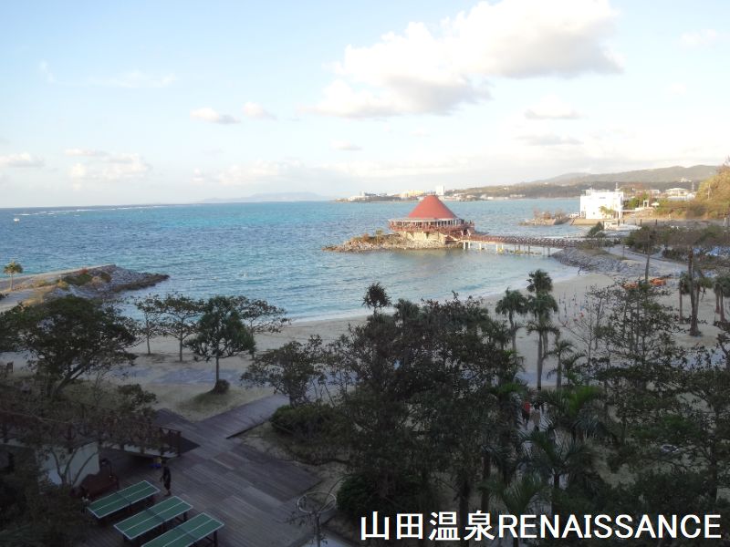 かつては日帰り入浴も可能でしたが、2008年のリニューアル以降、同ホテル内で3~4連泊以上あるいはルネッサンスフロアおよび和室スイート宿泊者しか利用することができません。沖縄で多分一番有名な温泉、山田温泉は、沖縄中部、恩納村のビーチ沿いにあるホテル、ルネッサンスリゾートオキナワの中にある温泉です。ルネッサンスリゾートホテルは、プールやプライベートビーチ、海の中の展望レストランなどある本格的なリゾートホテルで、山田スパ(温泉浴場)だけでなくタラソスパもあります。また、すぐ横の海はダイビングの山田ポイントとしても知られていて、実際潜りましたが魚も多くてきれいな海でした。特に「ニモ」のモデルのクマノミ、そのニモのパパと一緒に旅した魚のツノダシを見る事が出来ました。