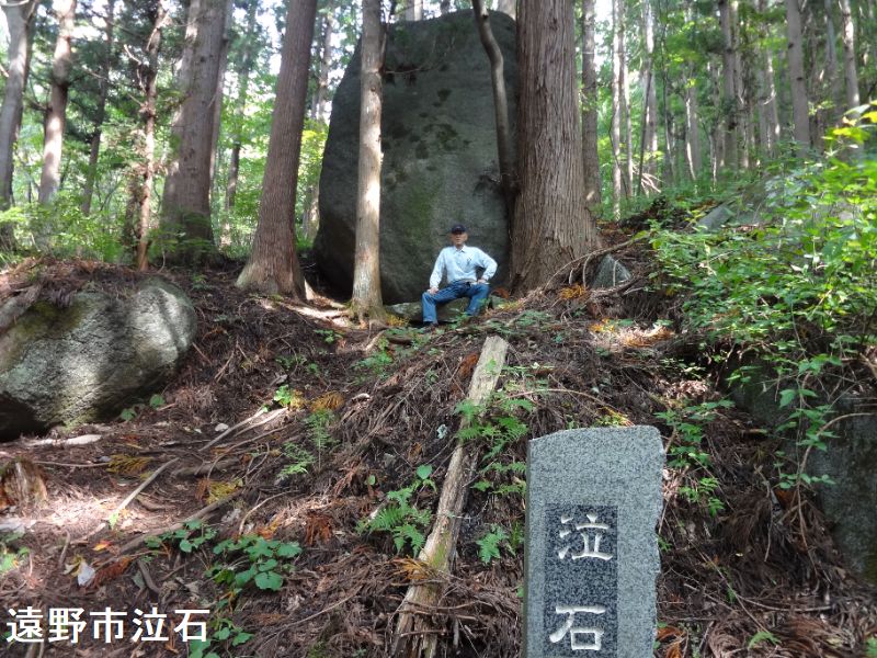 遠野物語では弁慶が泣石という石に笠石をのせたら、泣石は自分は位の高い石なのに笠石の下になるとは残念と一晩中嘆いたので、弁慶はそれなら他の岩を台にしようと現在の台石の上に置きかえたと伝えられています(遠野物語拾遺)。またある鷹匠が続石で遊ぶ山男と山女のカップルを見かけ邪魔をします。するとその鷹匠は谷底に転落し3日後に山の神達の祟りで死んでしまうという話しも記されています(遠野物語九一)。