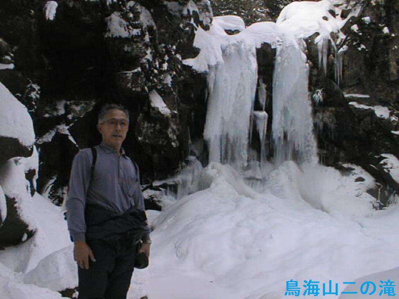 二ノ滝は鳥海山の南麓の標高約500mに位置していますが、ここは今から約10万年前に噴火の時に流れ出した硬い安山岩の溶岩でできています。そこを鳥海山の豊富な水が削ってできた落差約20mの二筋の滝が流れています。厳冬期になると滝全体が巨大な氷柱になります。二ノ滝の手前にある一ノ滝も落差約20mで、滝が滝壺に流れ落ちる様子を眺めることができます。ここも安山岩の溶岩ですが、滝壺の少し上の岩が水の力でえぐられていることがわかります。駐車場から二ノ滝まではブナなどの広葉樹林の緑豊かな渓谷が広がっていて、鳥海山の水の豊かさと自然の豊かさを四季を通して楽しむことができます。鳥海山では噴火の時に流れ出した溶岩がつくり出した地形を広い範囲で見ることができますが、二の滝は「鳥海山の水と溶岩が作った寄り添うように流れる二筋の滝」です。