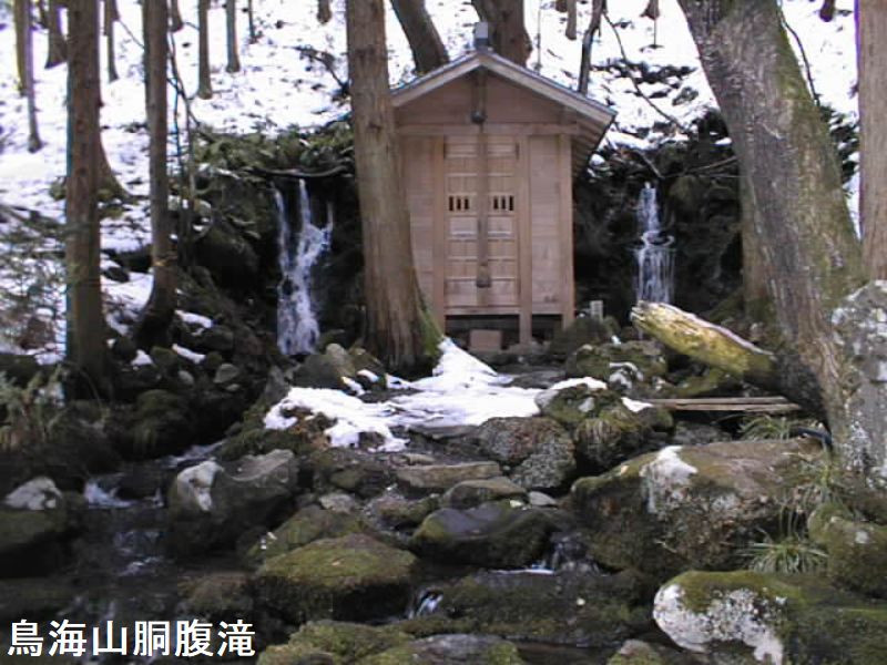 鳥海山の伏流水が山腹から湧き出ている様子が身体の「どうっぱら」という例えで胴腹滝と呼ばれています。2カ所から噴き出しているのですが、右と左の味が違うと言われています。そのため、この水を汲んでいる人の中には右の水を汲む人、左の水を汲む人、半分ずつ混ぜる人など好みで別れます。山深く雪も多いのですが、冬でも凍ることがなく、年中水汲みの人が絶えません。