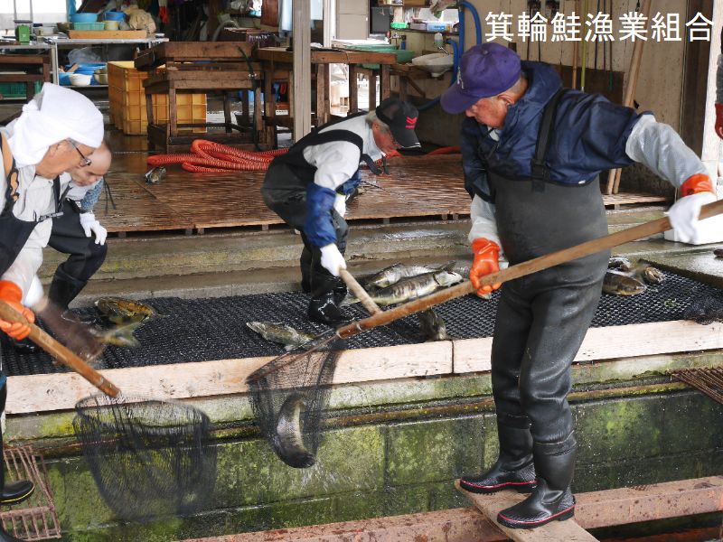 鮭は約4年もの間、北洋で大回遊しながら成長し、生まれ育ったふるさとの川に戻り、産卵し一生を終えます。しかし自然界では卵が土砂等に埋もれたり、他の魚に食べられてしまうなど、稚魚に育つまでに相当数が減ってしまいます。たくさんの鮭が遡上する遊佐町では、親鮭から人工的に採卵し、ふ化管理して稚魚を育て放流する「人工ふ化事業」が行われています。