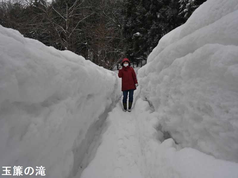 駐車場のある鳥海山南テラスまでの道路は、冬期間の除雪は土、日、祝日に行います。平日にお越しの場合は車が通れないこともありますのでご注意ください。また、玉簾の滝までの遊歩道並びに参道は原則除雪されませんので、雪の状況によってはかんじきが必要です。