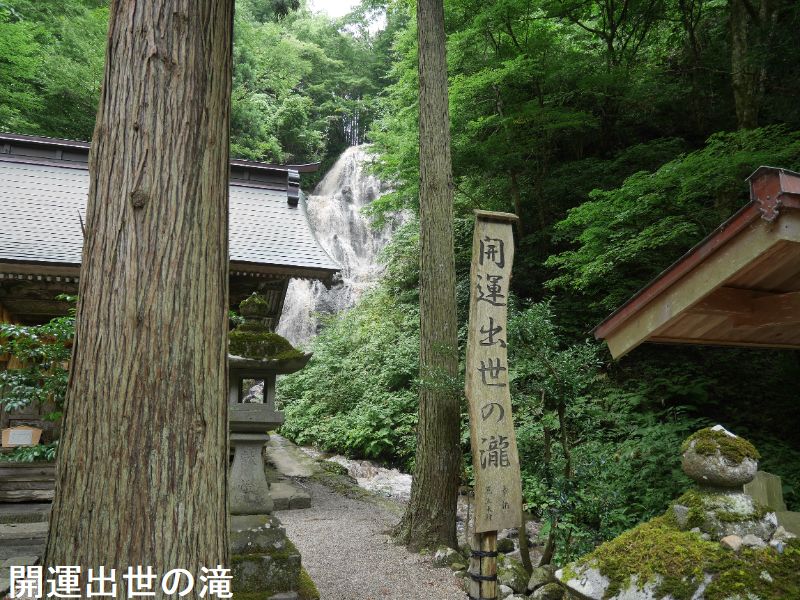 およそ1,200年前、弘法大師が神のお告げにより発見し、命名したとされる山形県随一の高さ63m、幅5mの直瀑です。かつては山岳宗教の修験場であり、滝の前には「御嶽神社」が祀られています。駐車場からは遊歩道も整備されており、徒歩約10分で滝に着きます。また、周辺には、杉の大木があり、マイナスイオンがあふれていることからパワースポットとしても人気です。