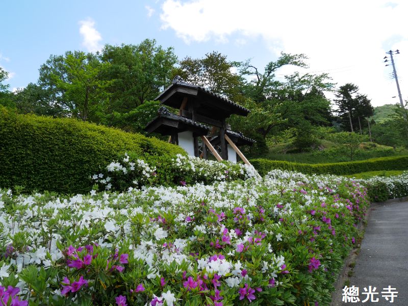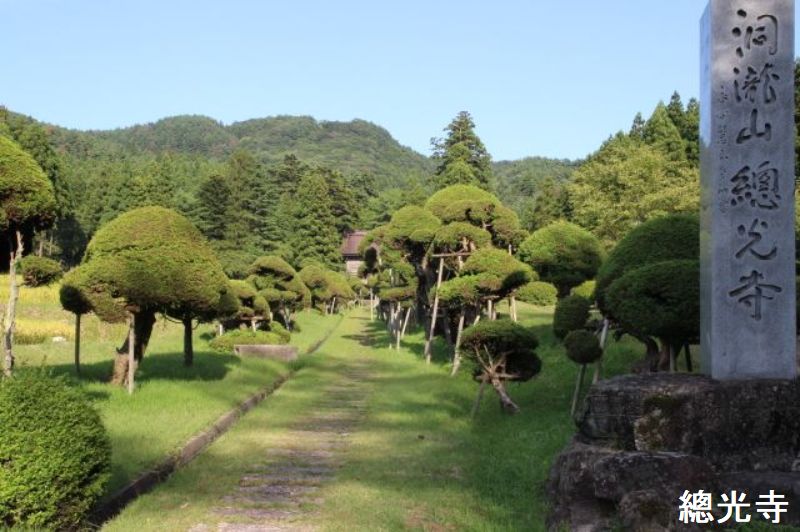 總光寺は、1384年に月庵良圓禅師が開山し、伊勢守佐藤正信公が創建した曹洞宗の禅寺です。祖先にあたる佐藤継信は、屋島の戦いの際、矢を源義経の身代わりとなって受けて討死したとされています。(平家物語)樹齢400年の『きのこ杉』や1811年に建立された『總光寺山門』はじめ、国指定名勝庭園『蓬莱園』など、見どころいっぱいです。季節の御朱印や写経・總光寺オリジナル写仏体験はじめ、こころを見つめる坐禅体験などが人気です。