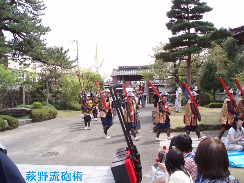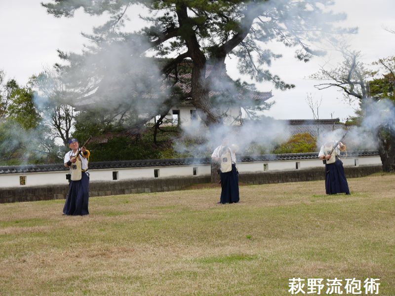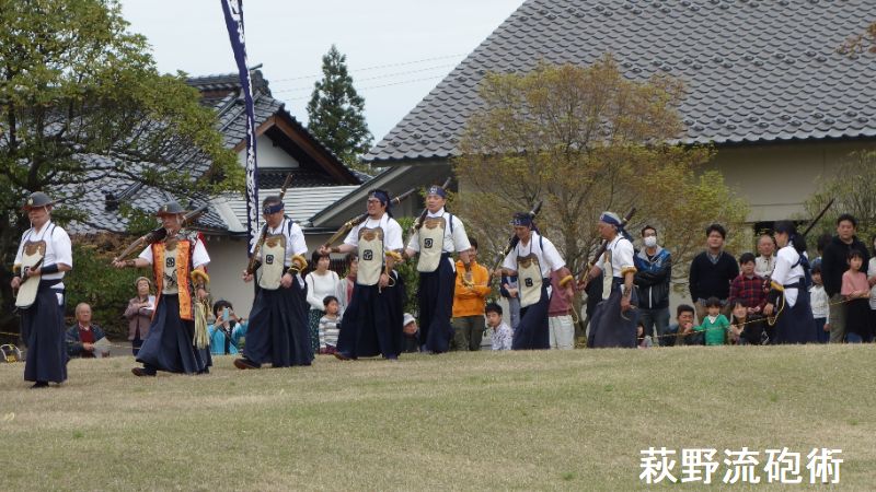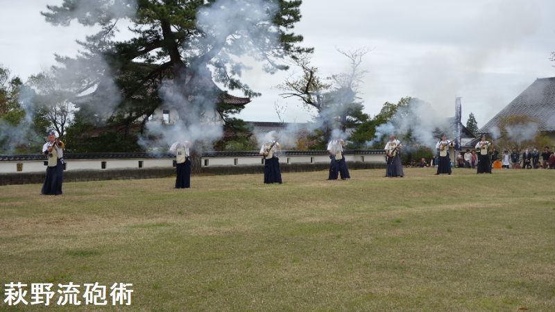 荻野流砲術は、松山藩士の山本丈右衛門が1808(文化5)年に免許皆伝を受け、藩内や周辺に広めました。明治期以降も武者行列の中で演武していましたが、戦後間もなく火薬使用の規制強化で一時、中断されました。1990年に旧松山町民の間で復活の話が盛り上がり、有志が庄内藩荻野流砲術伝承保存会(土方大美会長)を結成。伝統の作法など研究し97年、松山藩350年祭で試験発砲。98年の松山まつりで演武を披露しました。2003年に旧松山町無形文化財に指定されました。